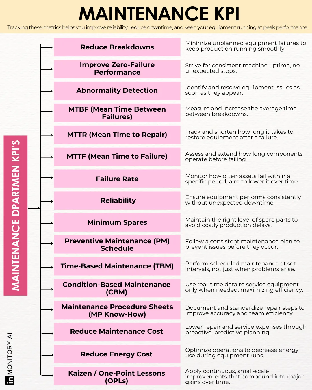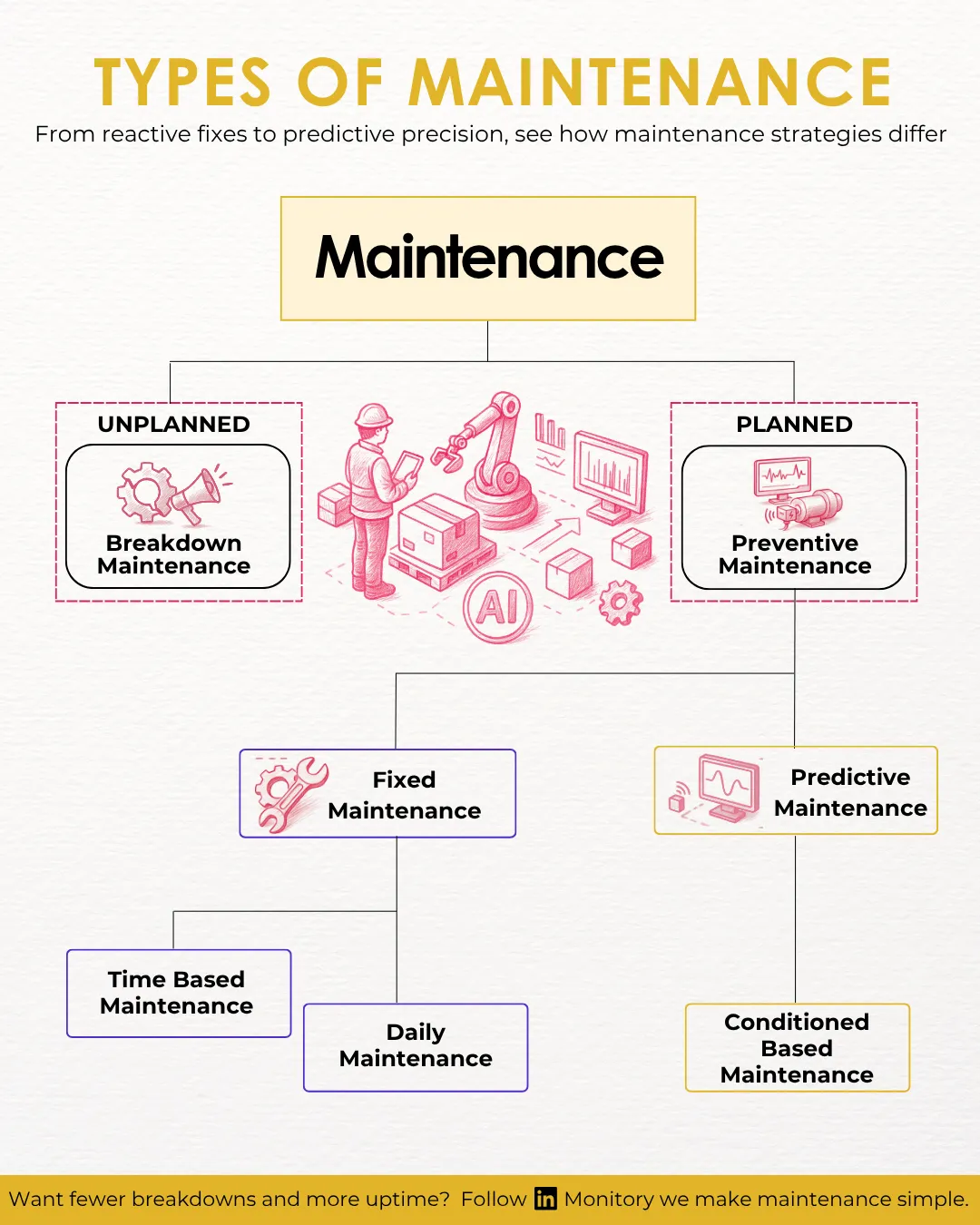 In this post, we break down the types of maintenance you need to know, the KPIs that matter, and how AI-powered platforms like Monitory are redefining what effective maintenance looks like.
